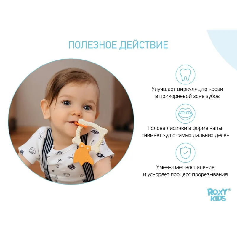 Dentisorul FOX TEETHER de la ROXY-KIDS este potrivit pentru toate etapele de dentitie la bebelusi.