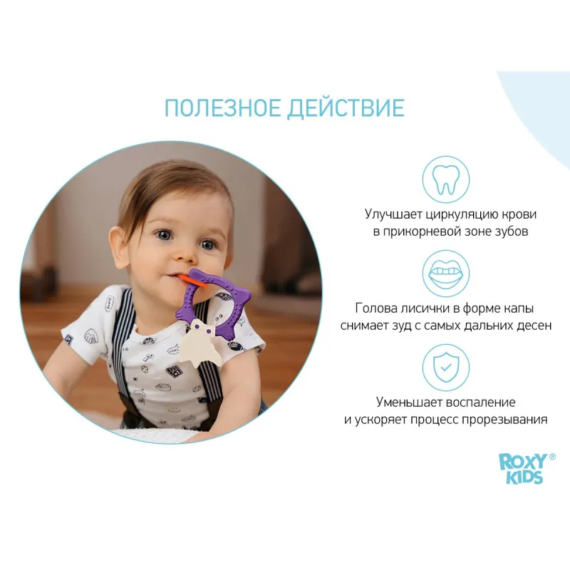 Dentisorul FOX TEETHER de la ROXY-KIDS este potrivit pentru toate etapele de dentitie la bebelusi.
