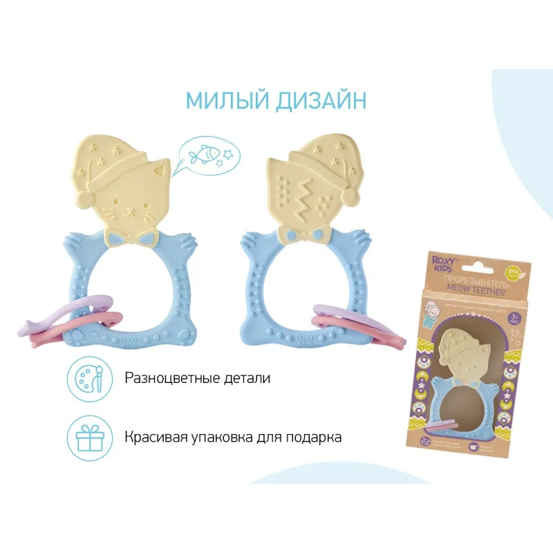 Inel gingival Roxy Kids „Meow” (RMT-001) Albastru
