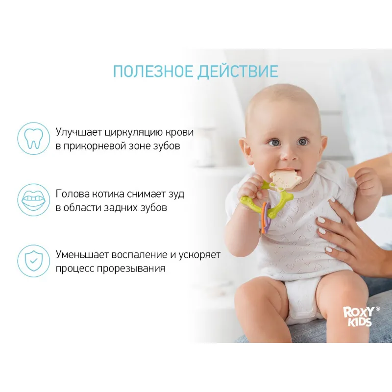 Dentisorul FOX TEETHER de la ROXY-KIDS este potrivit pentru toate etapele de dentitie la bebelusi.