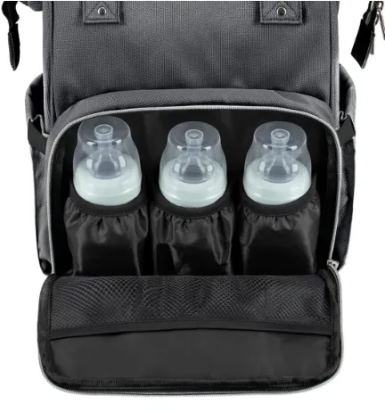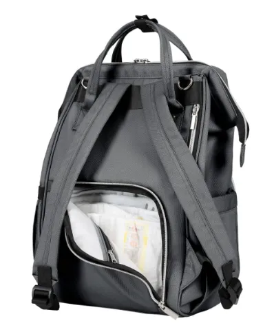 Organizare Eficientă – Include o deschidere principală largă cu cadru metalic pentru acces rapid și ușor, buzunare organizatoare pentru scutece și accesorii, precum și un buzunar rezistent la apă pentru obiecte ude.