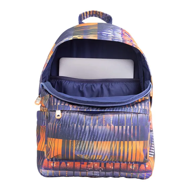 Rucsac MILAN din colecția FIZZ. Compartiment principal cu fermoar și buzunar protector pentru laptop. Plus un mic buzunar intern ușor accesibil. Buzunar suplimentar cu fermoar în partea din față. 2 buzunare laterale ușor accesibile cu închidere Velcro. Curele de umăr moi reglabile. Mâner superior pentru agățare. Ideal pentru școală sau pentru o excursie. Colecția Fizz este o combinație de texturi variate și gradiente în tonuri crepusculare.