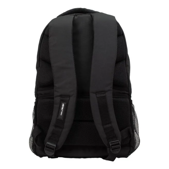 Rucsac de școală cu 4 fermoare. Seria apus de soare, culoare neagră. O combinație de culori degrade inspirate de apus, însoțite de detalii alb-negru. Tragere cu fermoar cu cordon. Un buzunar principal cu compartiment interior de protecție pentru laptop. 3 buzunare frontale. 2 buzunare laterale din plasă de acces ușor. Bretele reglabile, partea din spate căptușită și respirabilă, bază întărită. Vă permite să adăugați un cărucior de rucsac. Țesătură exterioară „ripstop”: ușoară și rezistentă la rupere și agățați. Utilizează o tehnică specială care țese fire groase de armare la intervale regulate, creând un model încrucișat. Compoziția țesăturii: căptușeală exterioară și interioară din poliester. Dimensiuni: 46,5 x 30 x 17 cm. Capacitate: 25 litri.