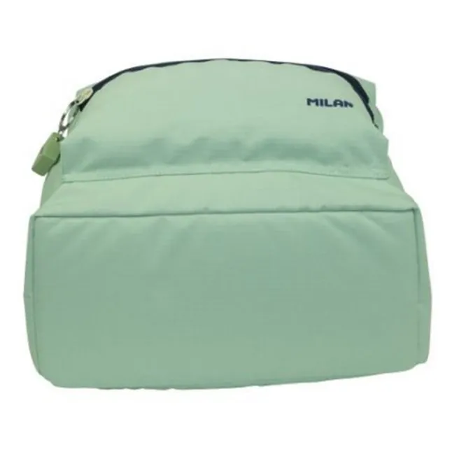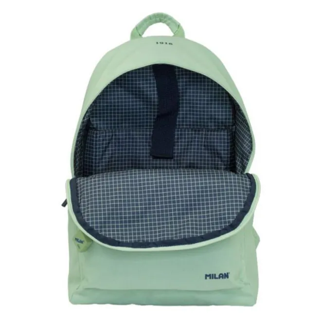 Rucsac urban clasic cu 2 fermoare. Seria 1918, culoare verde cu detalii bleumarin. Inspirat de culorile și designul originale ale radierelor MILAN, fabricate în Spania din 1918. Compartiment principal cu husă de protecție pentru laptop. Buzunar frontal și două buzunare laterale cu velcro cu acces rapid. Bretele reglabile, spate căptușit și respirabil. Buzunarul frontal include un inel de chei cu gumă de șters 430 pe mânerul cu fermoar. Captuseala interioara bleumarin imprimata cu o grila care evoca forma radierelor MILAN. Țesătură exterioară „Ripstop”: ușoară și rezistentă la coacere și rupere. Utilizează o tehnică specială care țese fire groase de armare la intervale regulate, creând un model încrucișat. Compoziția țesăturii: țesătură exterioară din poliester și căptușeală interioară. Dimensiune: 41 x 30 x 18 cm. Capacitate: 22 litri.