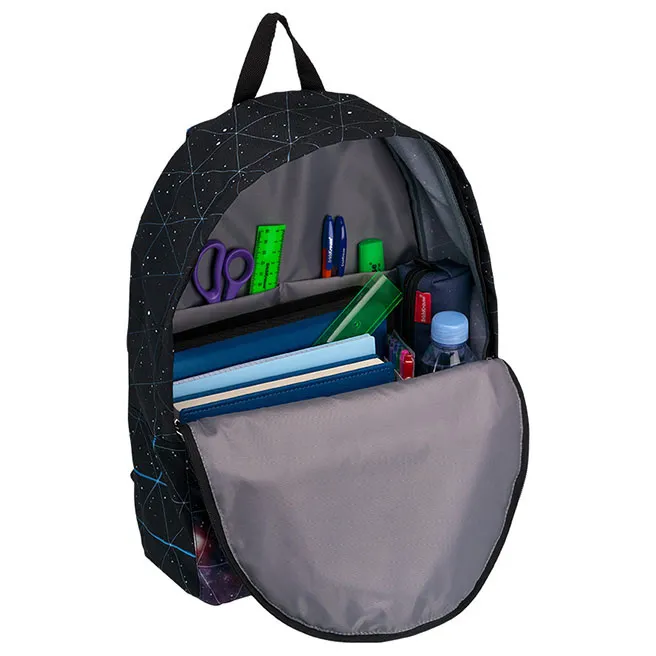 Acest model de rucsac are o capacitate de 17 litri și măsoară 39x29x13 cm. Rucsacul este fabricat din poliester 100% 600D rezistent la îngheț și la apă. Compartimentul principal poate găzdui cu ușurință rechizite școlare cu manuale A4+ sau un schimb de haine. Buzunarul frontal mare cu fermoar este la îndemână pentru a ascunde obiecte mici sau accesorii.