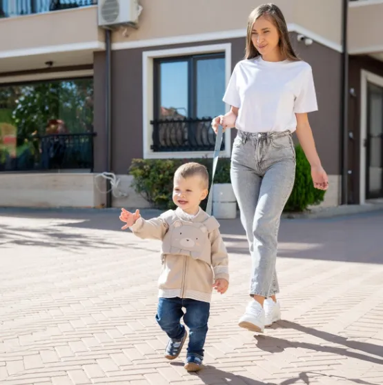 Mobilitate controlată - Cureaua reglabilă (90 cm) îți permite să controlezi mișcările copilului tău cu delicatețe și siguranță pe măsură ce explorează.