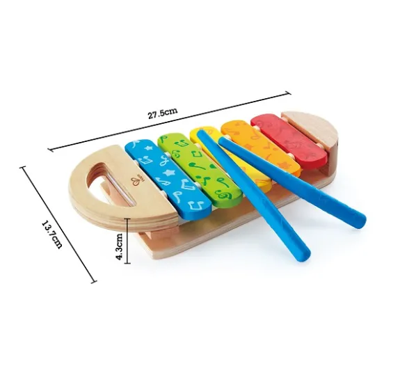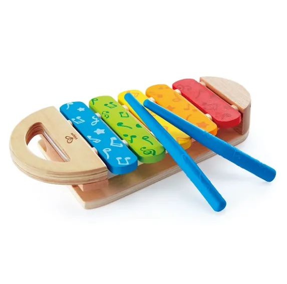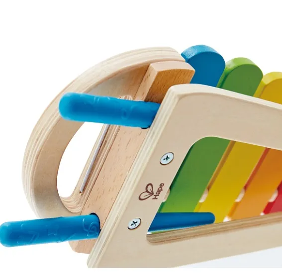 Xilofonul curcubeu de la Hape este jucăria perfectă pentru a introduce copiii în lumea sunetelor și culorilor. Fiecare bară colorată produce un sunet unic la lovire, transformând jocul într-o experiență muzicală captivantă.