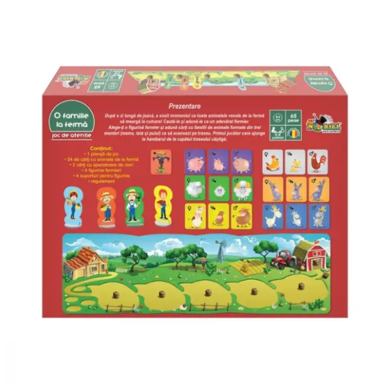 „Familia la fermă” este un joc educativ și distractiv, perfect pentru întreaga familie! După o zi lungă de joacă, toate animalele de la fermă trebuie să meargă la culcare. Tu vei fi fermierul care le adună și le plasează în locul lor, dar trebuie să ai grijă să formezi corect familiile de animale, pentru a avansa pe traseu și a ajunge primul la hambar!