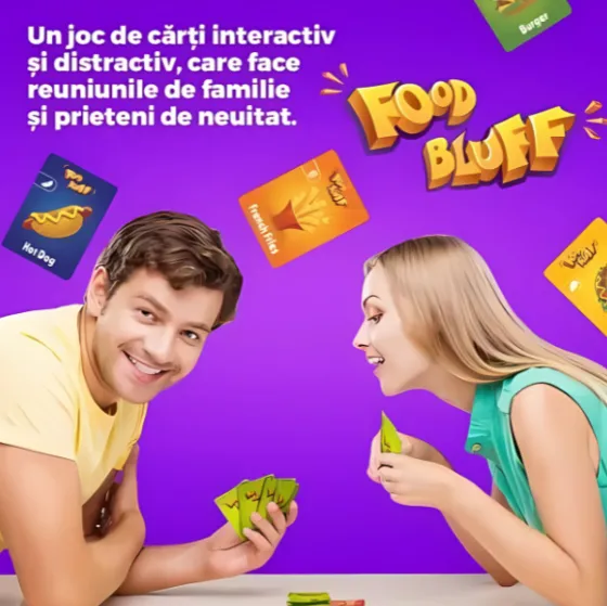 Intră în lumea savuroasă a jocului Food Bluff, un joc de cărți interactiv și distractiv care face ca întâlnirile în familie sau cu prietenii să fie de neuitat. În Food Bluff, controlul emoțiilor este esențial. Așadar, stăpânește-te, demască-i pe cei care bluffează din jurul tău și bucură-te de o porție zdravănă de distracție împreună cu cei dragi.