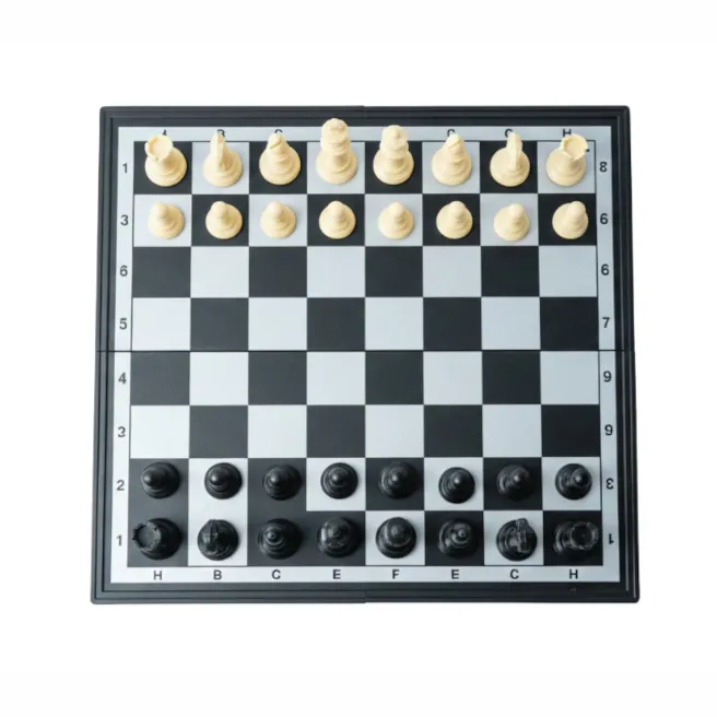 Set intelectual clasic în format compact, ideal pentru joc în orice condiții. Setul include piese de șah și un tablou pliabil cu dimensiunile 21x10x3 cm, cu marcaje clare alb-negru.