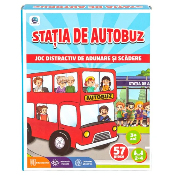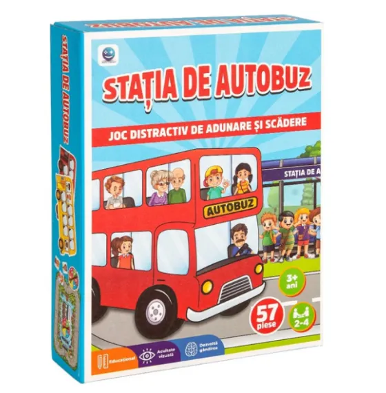 Stația de Autobuz este un joc educativ și distractiv care ajută copiii să învețe despre adunare și scădere, în timp ce se distrează și învață noțiuni de bază de matematică! Fiecare jucător va trebui să adune cât mai mulți pasageri pentru a ajunge la stația de autobuz și a deveni câștigătorul jocului. Un joc perfect pentru a învăța să numeri și să calculezi într-un mod interactiv!