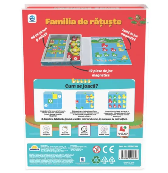 În acest joc, rățuștele trebuie plasate pe tabla magnetică conform indiciilor din cele 48 de jocuri. Diferitele niveluri de dificultate stimulează constant gândirea copiilor, oferind în același timp distracție și provocare.