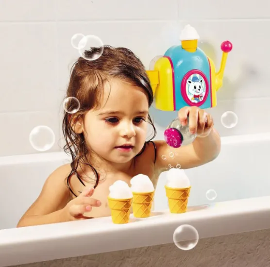 Această jucărie este ideală pentru copiii care pot avea frică de apă, ajutându-i să uite de temeri și să se bucure de timpul petrecut în baie. Setul include trei cornete cu baza plată, care se așează ușor pe marginea căzii, permițându-i copilului să „servească” înghețata de spumă. Dispozitivul se montează ușor pe peretele băii sau pe marginea căzii cu ajutorul ventuzelor, asigurând o utilizare sigură și stabilă.