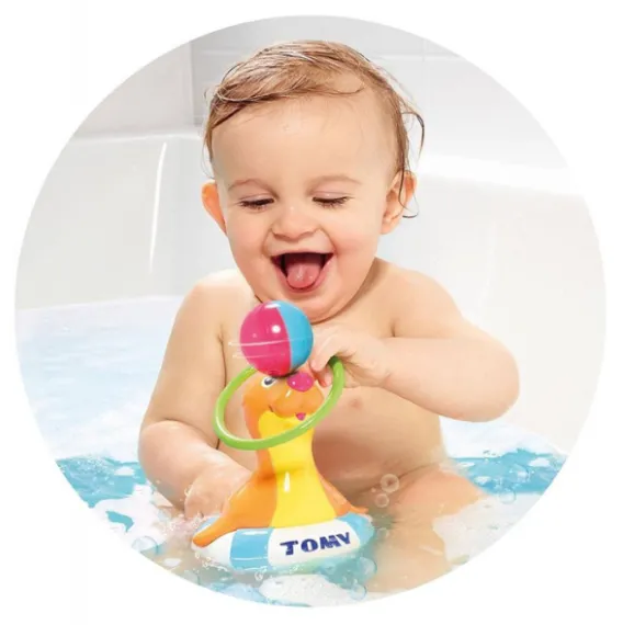 Faceți cunoștință cu foca Sandy de la Tomy — jucăria perfectă pentru a aduce mai multă distracție în timpul jocului! Apăsați butonul de pornire/oprire de pe spatele lui Sandy pentru a o activa. Odată pornită, Sandy începe să dea din coadă. Așezați mingea pe fruntea ei și priviți cum Sandy începe să învârtă mingea cu botul! Pentru și mai multă distracție, încercați să aruncați inelul în jurul gâtului lui Sandy, dezvoltând astfel îndemânarea și coordonarea mișcărilor.