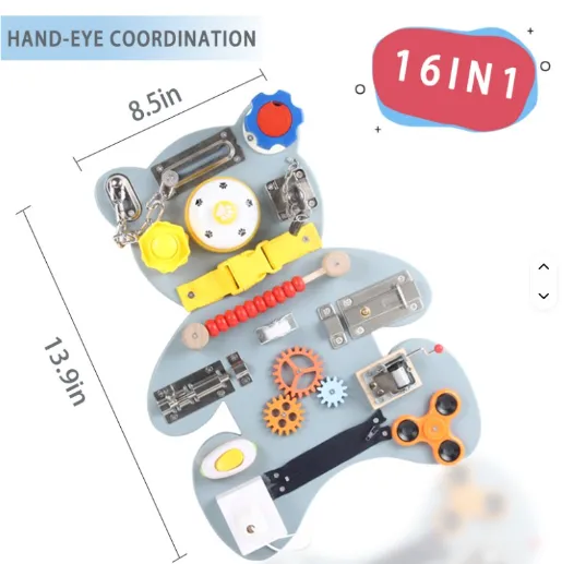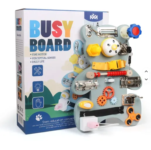 Busyboard din lemn "Ursulet", gri S12D010