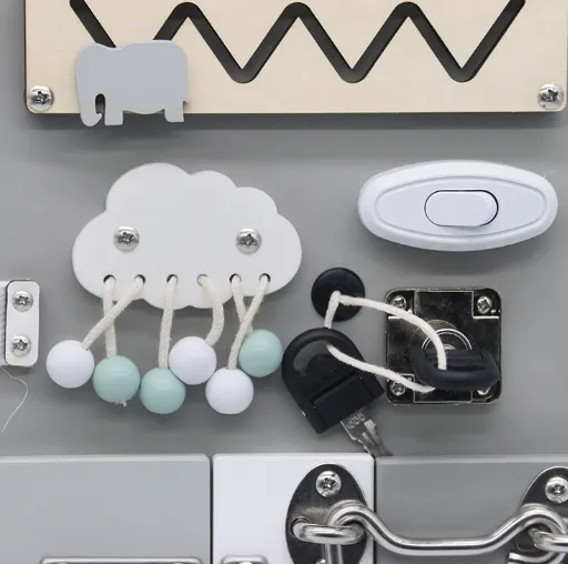 Panoul educativ din lemn „Elefănțel” W12D558 este o jucărie interactivă colorată, creată pentru a dezvolta motricitatea fină, logica și abilitățile senzoriale ale celor mici. Busyboard-ul include diverse elemente: rotițe, labirinturi, comutatoare, închizători, piese de numărat și alte module interactive care îi ajută pe copii să exploreze lumea prin joacă.