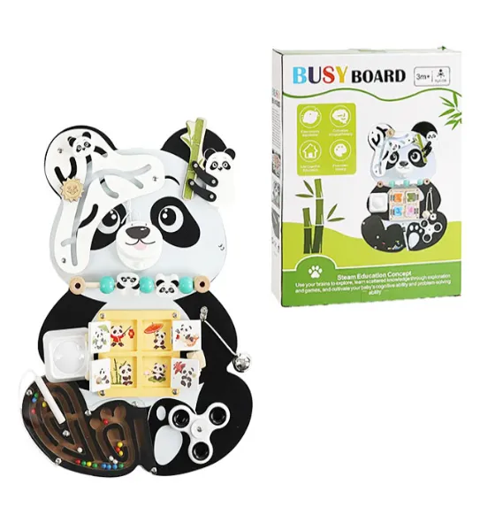 Busyboard „Panda” este o jucărie educativă captivantă pentru copii mici, care ajută la dezvoltarea atenției, motricității și curiozității. Realizată sub forma unei pande drăguțe, această tablă-jucărie este echipată cu diverse elemente mecanice: roți dințate, încuietori, butoane și pârghii, care contribuie la dezvoltarea coordonării mișcărilor și a perseverenței.