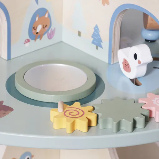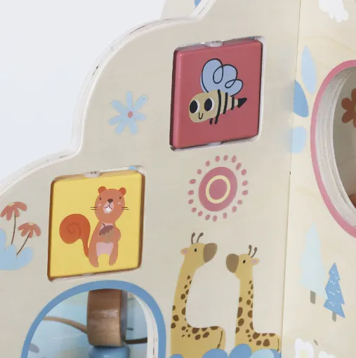 Panoul senzorial W12D751 este o jucărie educativă din lemn, concepută pentru dezvoltarea motricității fine și a abilităților practice ale copilului. Include elemente interactive precum încuietori, rotițe, clapete, șireturi și comutatoare, care stimulează curiozitatea și coordonarea mână-ochi. Fabricat din lemn natural, cu margini rotunjite și materiale sigure pentru copii. Ideal pentru joc independent și învățare prin explorare. Potrivit pentru copii de la 1+ ani.