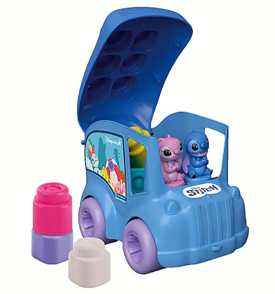 Setul de joacă autobuz 2 în 1 cu Stitch este un autobuz educativ viu colorat, creat pentru primele jocuri ale copilului. Setul include blocuri moi Clemmy și două figurine, iar elementele pot fi așezate pe acoperișul autobuzului sau păstrate în interiorul acestuia. Blocurile moi sunt sigure, flexibile și potrivite pentru mânuțele mici.