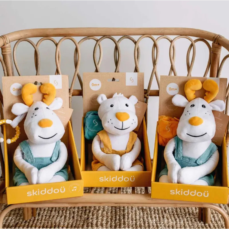 Skiddou Sovn - fără detalii mici și elemente cusute! Datorită acestui fapt, jucăria este potrivită pentru copii încă din prima zi de viață. Nimic nu împiedică o mare distracție.