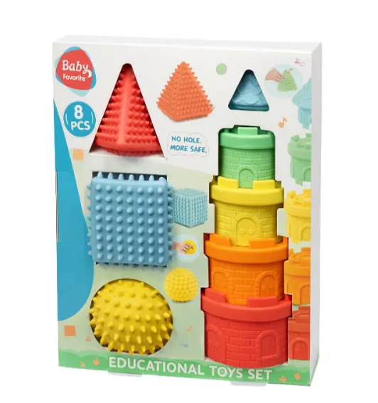 Piramida moale „Castelul” — o jucărie educativă colorată și sigură pentru cei mici. Elementele sunt realizate dintr-un material moale, plăcut la atingere, și se asamblează ușor unul peste altul, formând un castel de basm. Jucăria contribuie la dezvoltarea motricității fine, a coordonării mișcărilor și a imaginației copilului.
