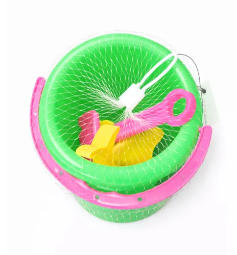 Setul de nisip cu găleată — un set excelent pentru joacă pe plajă, în nisipar sau la cabană. Setul include o găleată practică cu mâner și câteva forme colorate și accesorii pentru modelat în nisip.