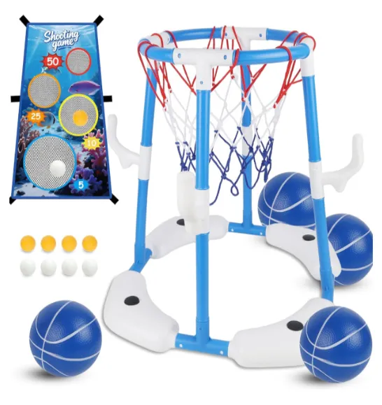 Acest centru de divertisment „3 în 1” combină baschetul, aruncarea inelelor și jocurile cu punctaj pentru aruncările cu mingea. Transformați instantaneu piscina pentru copii într-o arenă colorată de joacă, oferindu-le copiilor distracție de vară fără sfârșit.