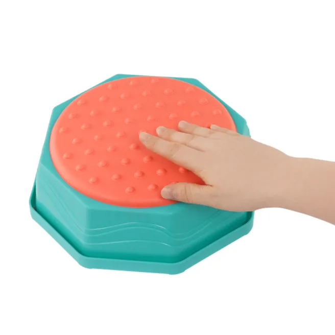 „Pietricelele” tactile adaugă jocului noi senzații – antrenează-ți picioarele și imaginația. Suprafața elementelor este antiderapantă – joacă în siguranță acasă sau afară.