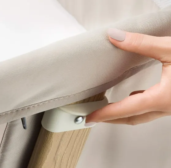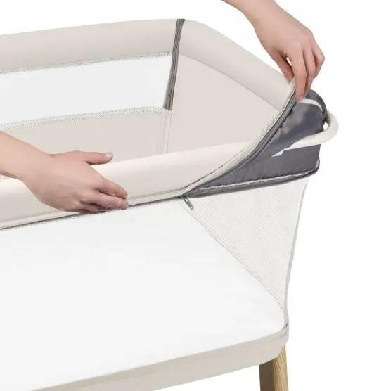 Când doriți să vă odihniți alături de copil, pur și simplu desfaceți panoul lateral și utilizați curelele de montare incluse pentru a crea un pătuț de dormit stabil, cu acces ușor la cel mic. Lungimea picioarelor poate fi ajustată pentru a se potrivi cu înălțimea patului părinților, pentru o potrivire optimă.