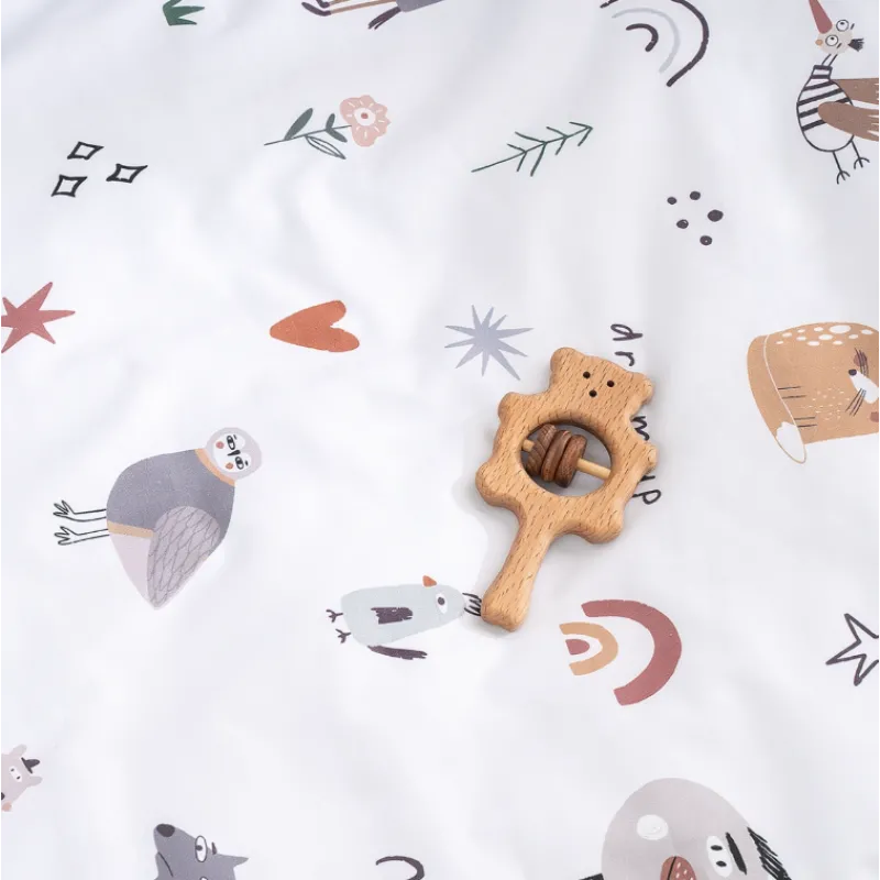 Setul Forest Baby este moale și plăcut la atingere datorită satinului premium. Calitatea țesăturii și metoda specială de aplicare a modelului vor asigura un aspect nou chiar și după spălări repetate. Satinul rămâne moale și neted pentru o lungă perioadă de timp. De aceea, copiii se simt atât de confortabil înfășurați în această lenjerie de pat.