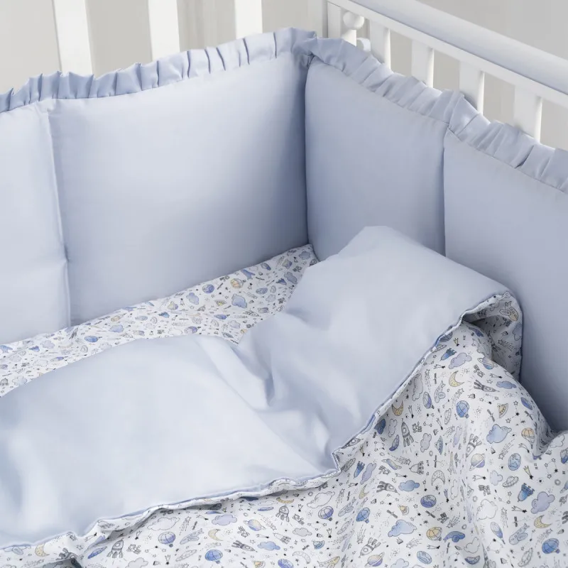 În loc de tăitura tradițională de pe husa plapumei, s-a folosit un fermoar ascuns. Acesta ajută ca husa să-și mențină forma pentru o lungă perioadă de timp. Cearceaful de pat este echipat cu o bandă elastică, ceea ce îl face ușor de îmbrăcat și îndepărtat. Astfel cearceaful va fi bine așezat pe saltea chiar daca copilul se va mișca în somn.
