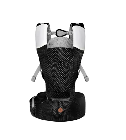 Este realizat din material din plasă, care permite o bună circulație a aerului, fiind ideal pentru lunile călduroase. Baza are o suprafață antiderapantă și este suplimentar umplută pentru a absorbi șocurile în timpul mișcării, oferind un contur ergonomic în formă de „M” pentru picioarele copilului. Baza poate fi folosită și separat. Port-bebelușul include o practică geantă pentru accesorii. Este potrivit pentru spălarea manuală.