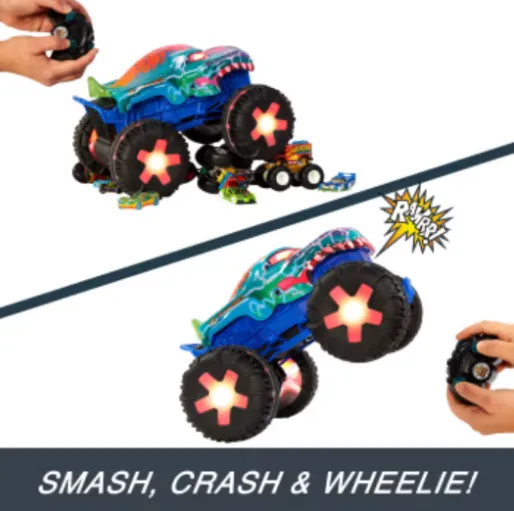 Hot Wheels Monster Truck Mega Wrex Alive RC, scara 1:15 (MTJBD90) este un monster truck cu telecomandă, cu efecte speciale ce îl fac să pară „viu”, inspirat de un dinozaur. Mega Wrex Alive impresionează prin designul agresiv, elementele mobile și roțile mari, potrivite pentru diferite tipuri de suprafețe.
