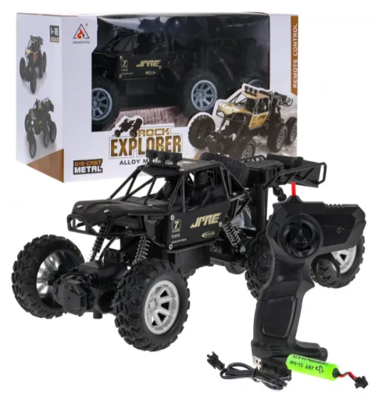 Mașinuța metalică cu șase roți, de teren, cu telecomandă și tracțiune integrală, este destinată copiilor cu vârsta de peste 3 ani. Anvelopele din cauciuc și suspensia cu arcuri a fiecărei roți permit mașinuței să depășească cu ușurință orice tip de suprafață. Mașinuța este fabricată din materiale de înaltă calitate și are o carcasă metalică, ceea ce îi asigură durabilitatea. Jucăria este alimentată de baterii de 3,7 V (incluse) — pentru mașină și 2 x AA de 1,5 V (nu sunt incluse) — pentru telecomandă. Timpul de încărcare al mașinii este de aproximativ 2 ore, iar timpul de funcționare — de aproximativ 10 minute.