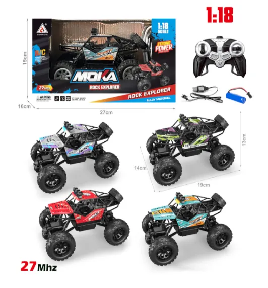 Mașina Rock Crawler 1:18 cu telecomandă este un SUV compact cu elemente metalice ale caroseriei, conceput pentru curse captivante acasă și pe stradă.