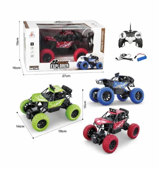 Mașina Rock Crawler 1:18 cu telecomandă — un crawler metalic manevrabil, ideal pentru curse captivante și depășirea obstacolelor.