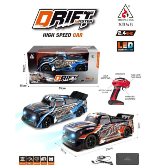 Mașina de drift telecomandată este un vehicul compact, dar puternic, dotat cu o serie de funcții pentru curse spectaculoase și drifturi impresionante.