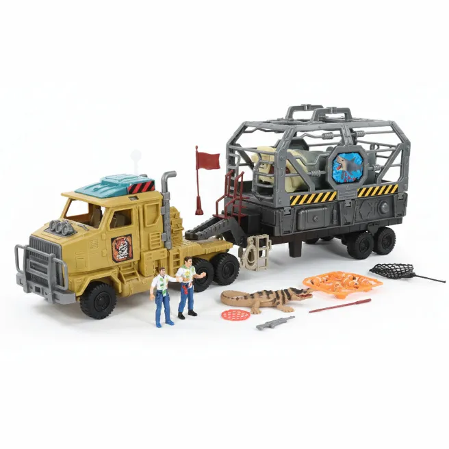 Elementul central al setului este camionul de transport cu cârlig sau troliu, realizat în stilul unui SUV. La camion se atașează o remorcă-cușcă (container) cu cadru metalic și compartiment pentru transport. Setul include figurine ale diferitelor animale. Setul conține o mulțime de accesorii mici, inclusiv figurine ale doi cercetători sau veterinari în uniformă, precum și două cârlige sau o plasă și elemente asemănătoare cu părți ale gardului. Setul are efecte luminoase și sonore, precum și o funcție de proiecție.