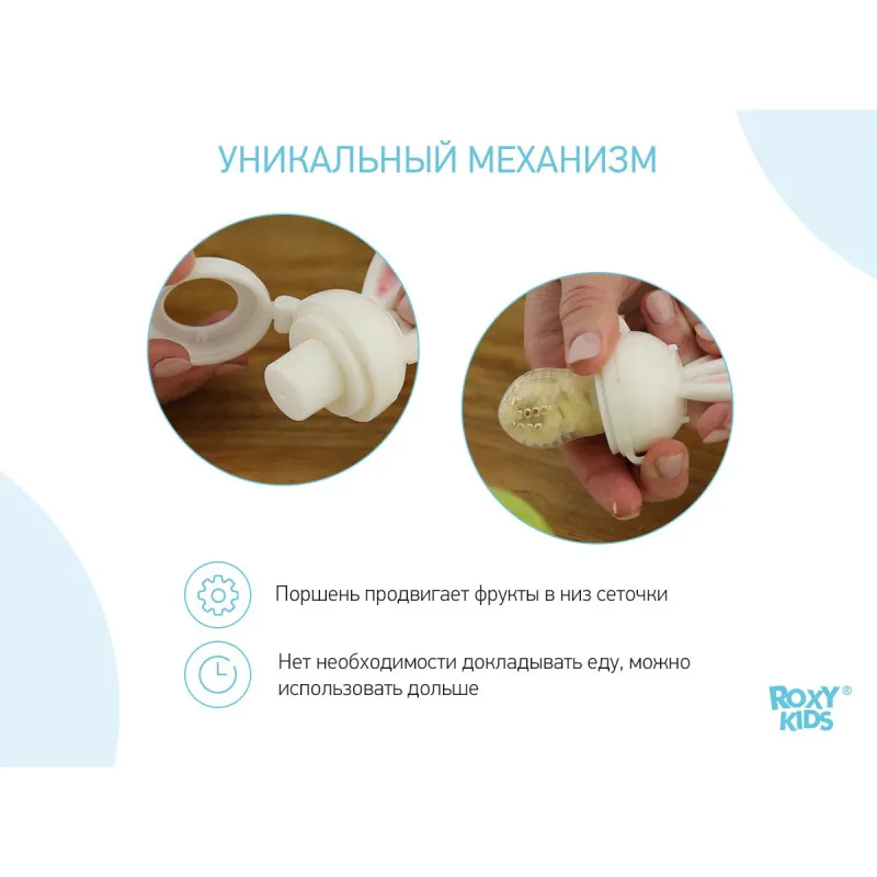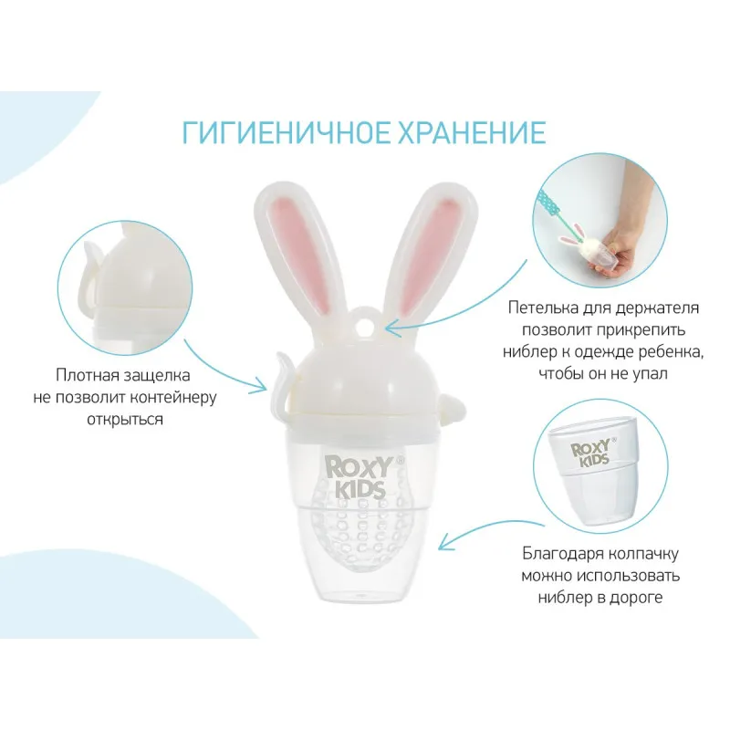 Niblerul BUNNY TWIST pentru introducerea primei alimente complementare de la ROXY-KIDS este sigur și ușor de utilizat.
