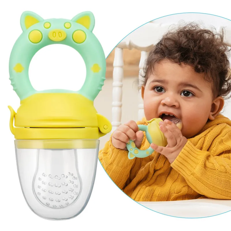 Nibler cu plasa de silicon Roxy Kids „Piggy” Mint-Galben (RFN-010)