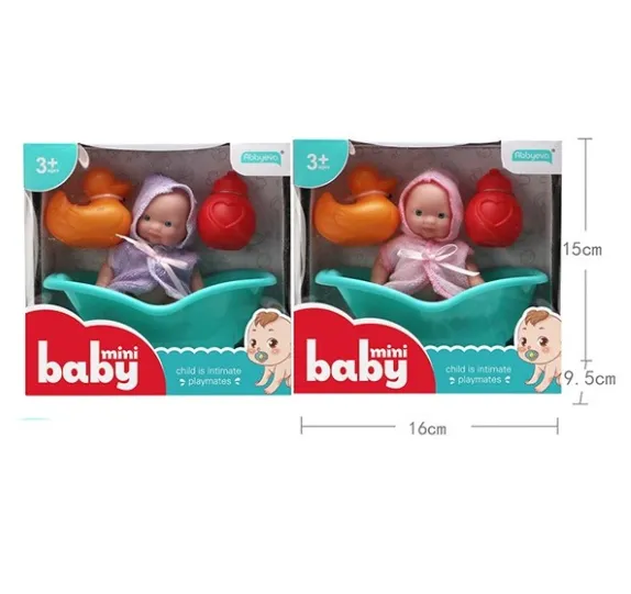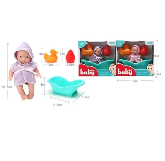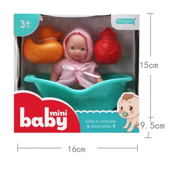 Cu bebelușul drăguț, fetița ta o să se simtă ca o „mamă adevărată”, care își pune cu grijă copilașul la băiță.