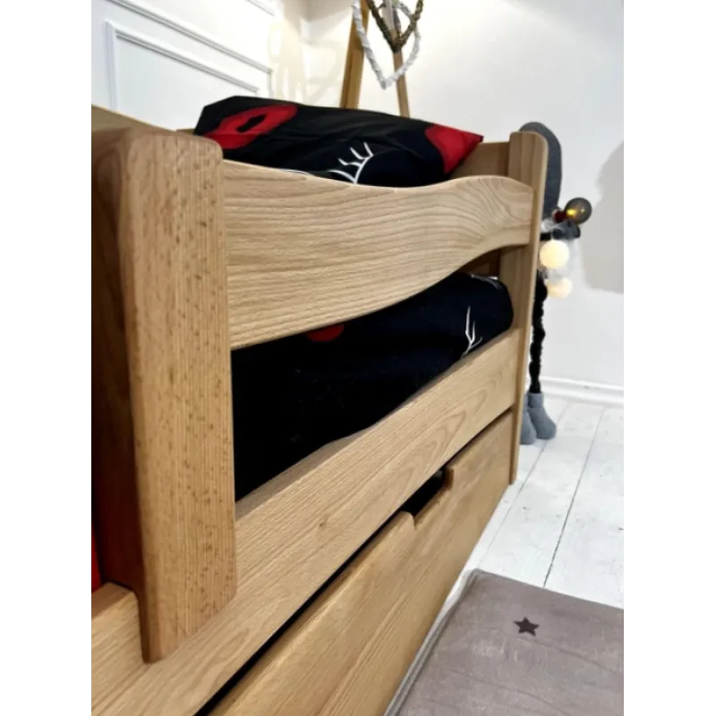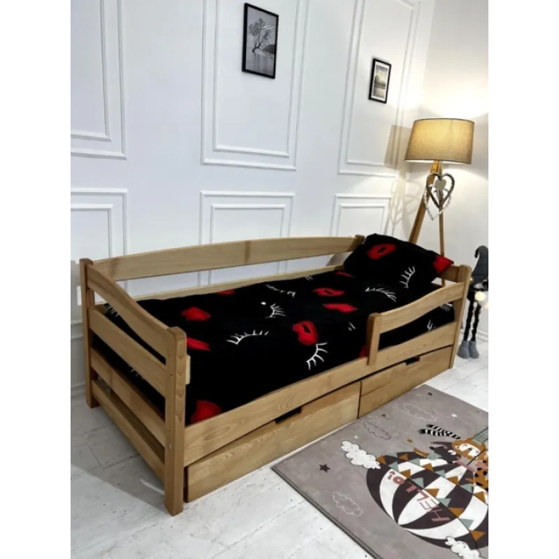 Patul confortabil din lemn AFINA are un design actualizat și o construcție solidă:* Patul este proiectat după schema clasică pe șuruburi pentru mobilă;* Lemn solid - Fag;* Fiecare detaliu al patului este lustruit cu grijă;* Este acoperit cu vopsea pe baza de apă;* Prezența sertarelor încăpătoare pe roți, pentru depozitare ușoară;* Lamele puternice de fag;* Toate detaliile din pat sunt rotunjite, ceea ce este important pentru siguranța copilului.
