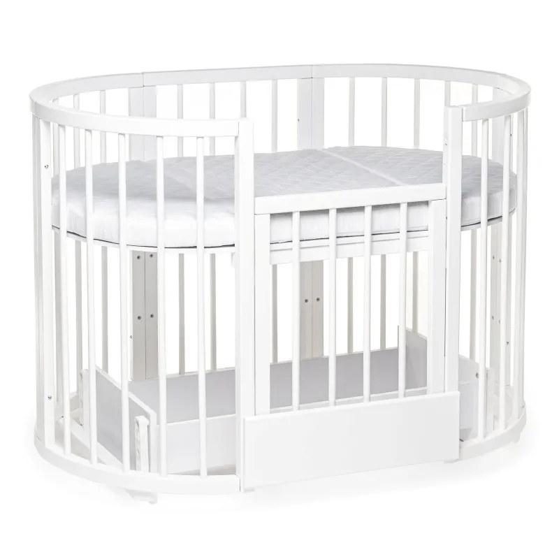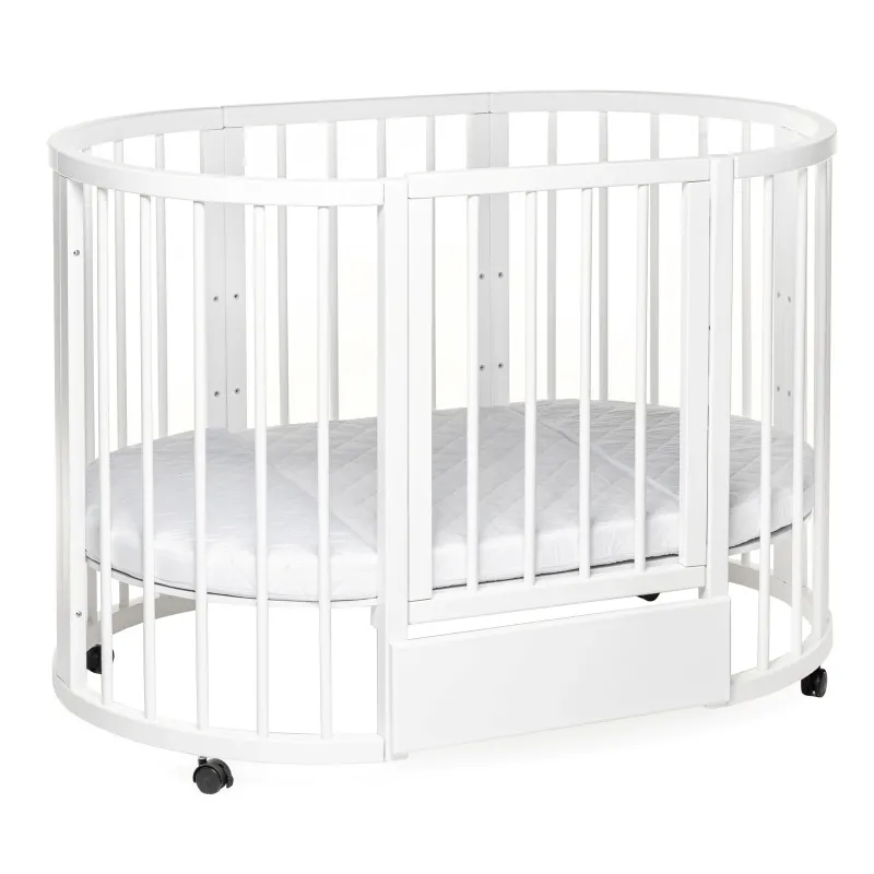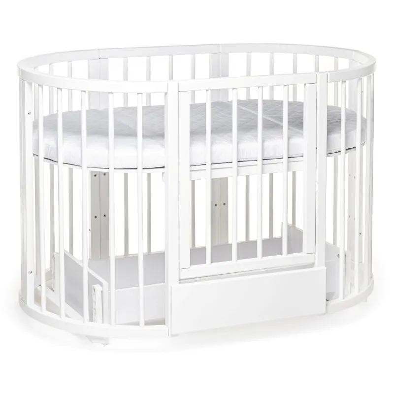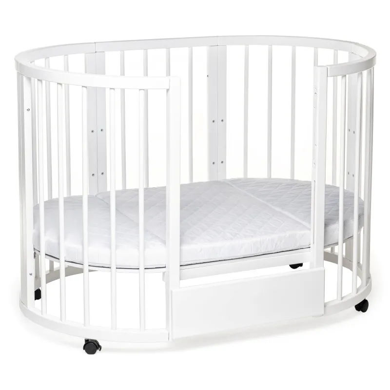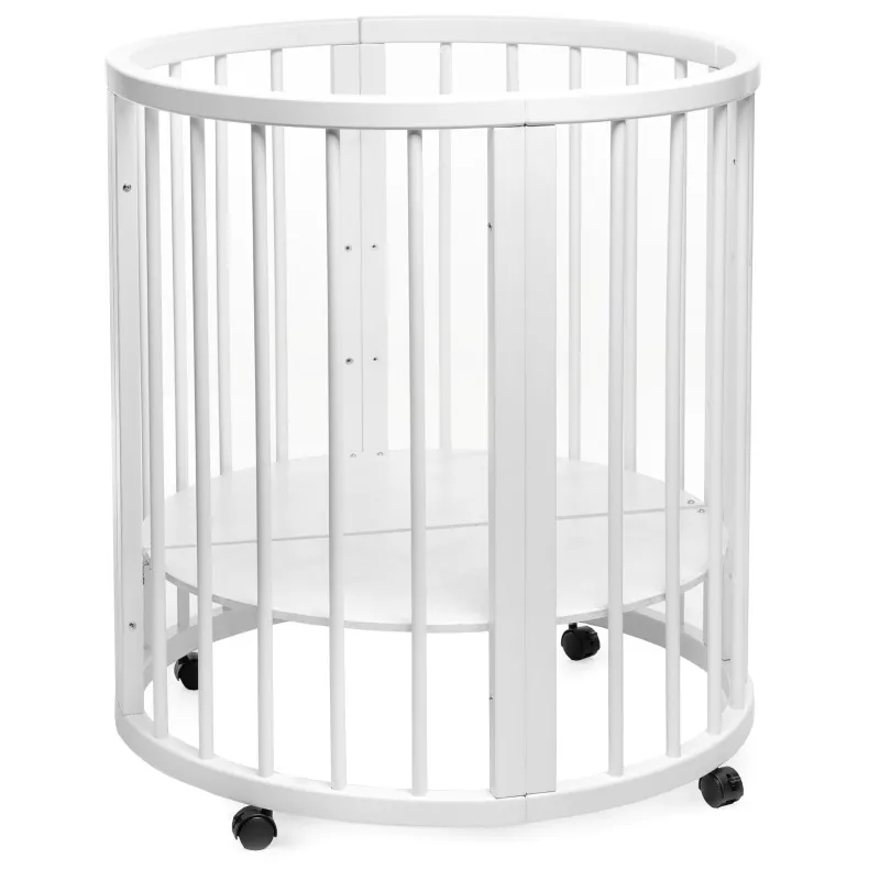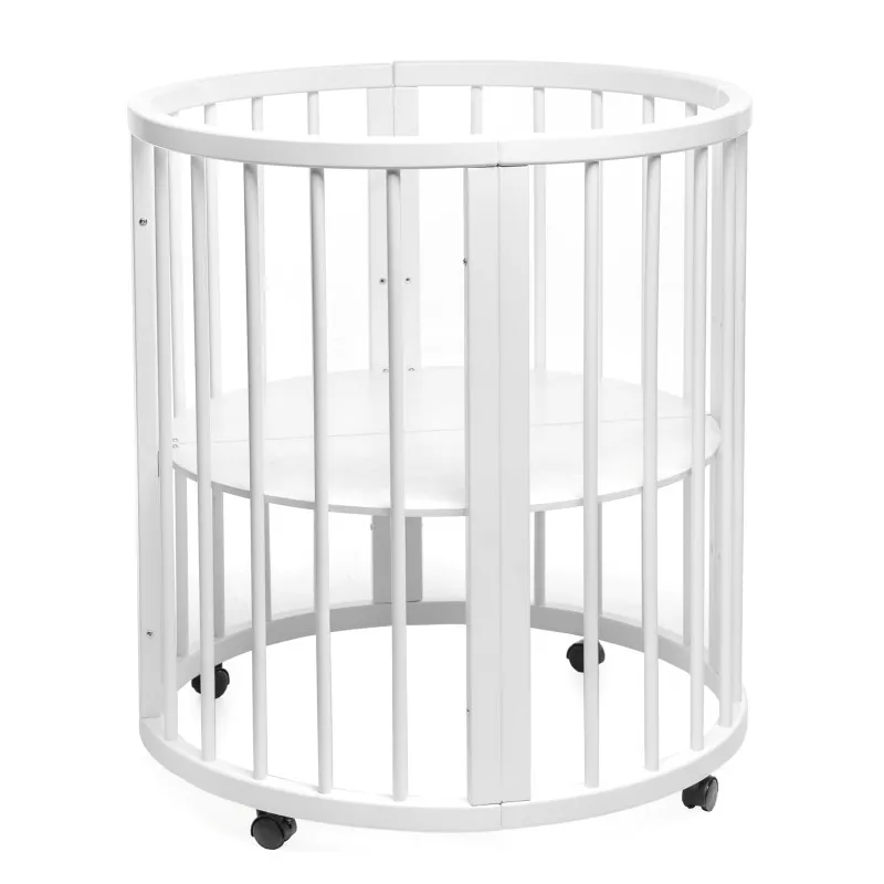 Pătuțul transformer rotund/oval Olivia a fost creat special pentru a aduce mama și copilul mai aproape - acum mama se poate apropia de bebeluș din orice parte a pătuțului.Este ideal pentru orice apartament deoarece colțurile „decupate” economisesc până la 40% din spațiu în comparație cu un pat dreptunghiular obișnuit!Marginile rotunjite nu vor permite copilului dvs. să se lovească, iar reglarea pe înălțime vă permite să ajustați pătuțul la nevoile copilului și ale părinților.Pătuțul vă va permite, de asemenea, să economisiți la achiziționarea de mobilier separat.Modalitățile de transformare:- Leagăn pentru nou născut 70x70;- Leagăn + mecanism de balansare transversal 70x70;- Masa de înfășat + rafturi;- Pat pe roți 70x120;- Pătuț + mecanism de balansare transversal 70x120;- Pat lateral fără perete 70x120;- Canapea pentru copil până în 3 ani;- 2 scaune pentru hrănire și jocuri, semicirculare;- Masă pentru hrănire, jocuri;