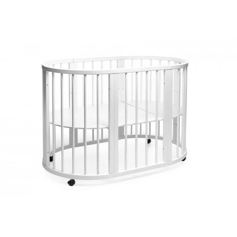 Pătuțul transformer rotund/oval Olivia a fost creat special pentru a aduce mama și copilul mai aproape - acum mama se poate apropia de bebeluș din orice parte a pătuțului.Este ideal pentru orice apartament deoarece colțurile „decupate” economisesc până la 40% din spațiu în comparație cu un pat dreptunghiular obișnuit!Marginile rotunjite nu vor permite copilului dvs. să se lovească, iar reglarea pe înălțime vă permite să ajustați pătuțul la nevoile copilului și ale părinților.Pătuțul vă va permite, de asemenea, să economisiți la achiziționarea de mobilier separat.Modalitățile de transformare:- Leagăn pentru nou născut 70x70;- Leagăn + mecanism de balansare 70x70;- Masa de înfășat + rafturi;- Pat pe roți 70x120;- Pătuț + mecanism de balansare 70x120;- Pat lateral fără perete 70x120;- Canapea pentru copil până în 3 ani;- 2 scaune pentru hrănire și jocuri, semicirculare;- Masă pentru hrănire, jocuri;- Canapea confortabilă pentru adolescenți 70x160.