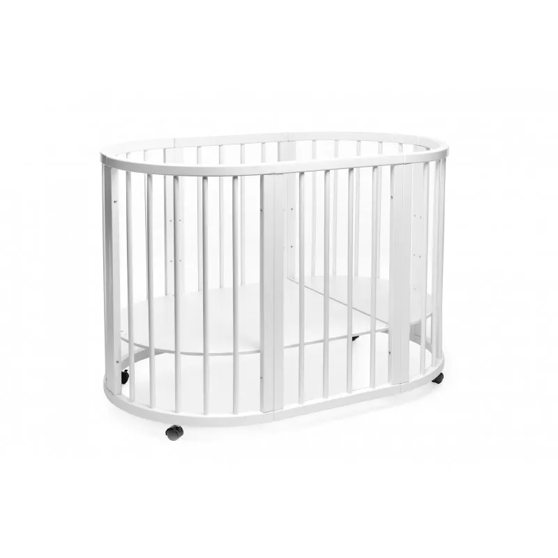 Pătuțul transformer rotund/oval Olivia a fost creat special pentru a aduce mama și copilul mai aproape - acum mama se poate apropia de bebeluș din orice parte a pătuțului.Este ideal pentru orice apartament deoarece colțurile „decupate” economisesc până la 40% din spațiu în comparație cu un pat dreptunghiular obișnuit!Marginile rotunjite nu vor permite copilului dvs. să se lovească, iar reglarea pe înălțime vă permite să ajustați pătuțul la nevoile copilului și ale părinților.Pătuțul vă va permite, de asemenea, să economisiți la achiziționarea de mobilier separat.Modalitățile de transformare:- Leagăn pentru nou născut 70x70;- Leagăn + mecanism de balansare 70x70;- Masa de înfășat + rafturi;- Pat pe roți 70x120;- Pătuț + mecanism de balansare 70x120;- Pat lateral fără perete 70x120;- Canapea pentru copil până în 3 ani;- 2 scaune pentru hrănire și jocuri, semicirculare;- Masă pentru hrănire, jocuri;- Canapea confortabilă pentru adolescenți 70x160.