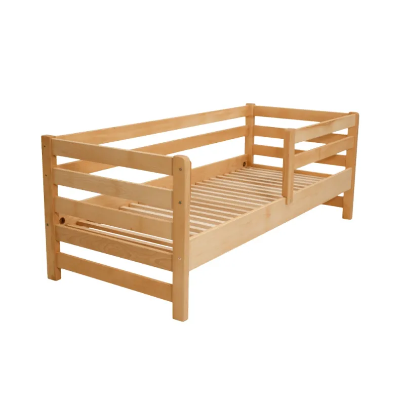 Modelul are deasemenea o latura protectoare pentru siguranta copilului, care, daca se doreste, nu poate fi atașată. Este realizat din lemn masiv de fag, șlefuit cu grijă și acoperit cu vopsea ecologică pe bază de apă.
