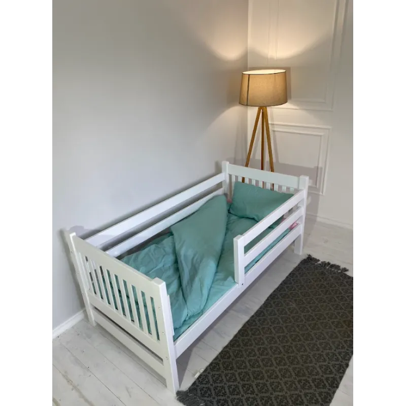 Modelul are deasemenea o latura protectoare pentru siguranta copilului, care, daca se doreste, nu poate fi atașată. Este realizat din lemn masiv de fag, șlefuit cu grijă și acoperit cu vopsea ecologică pe bază de apă.