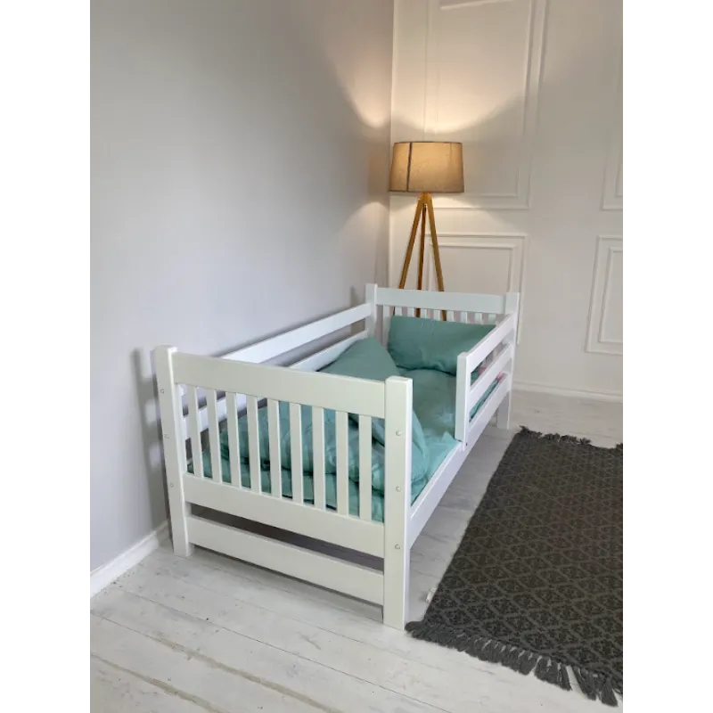 Modelul are deasemenea o latura protectoare pentru siguranta copilului, care, daca se doreste, nu poate fi atașată. Este realizat din lemn masiv de fag, șlefuit cu grijă și acoperit cu vopsea ecologică pe bază de apă.