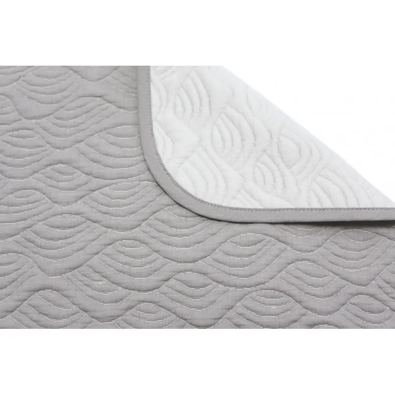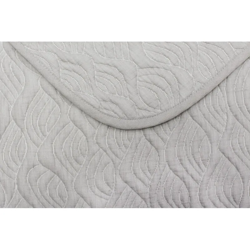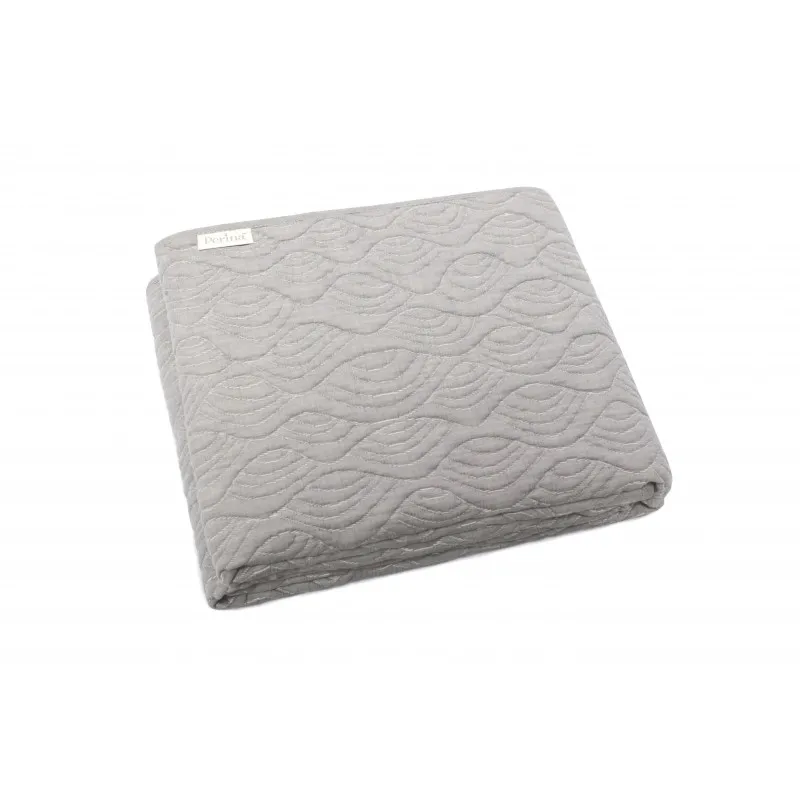 Cuvertura de pat elegantă în nuanțe naturale va proteja lenjeria de pat de praf și va fi un plus excelent pentru un interior modern.