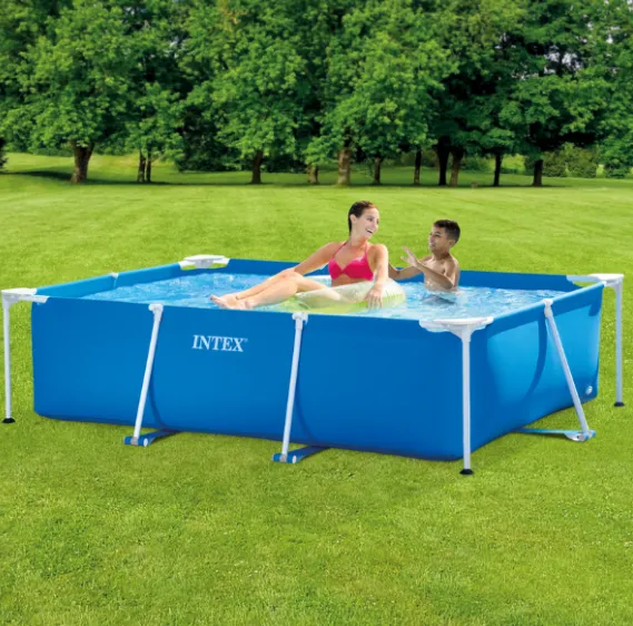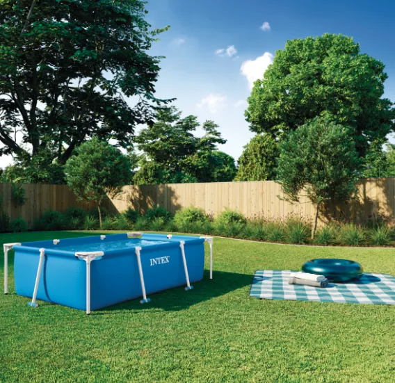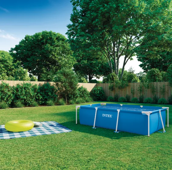 Piscina supraterană cu cadru din seria Rectangular Frame Pool se montează ușor și rapid. Procesul de asamblare durează aproximativ 30 de minute (până la umplerea cu apă). Tehnologia patentată SUPER-TOUGH conferă pereților piscinei o rezistență triplă. Aceștia sunt fabricați din trei straturi: două straturi de vinil dens și un strat de poliester pentru o durabilitate sporită. Cadrul din oțel oferă stabilitate și suport pentru utilizarea simultană de către mai multe persoane.